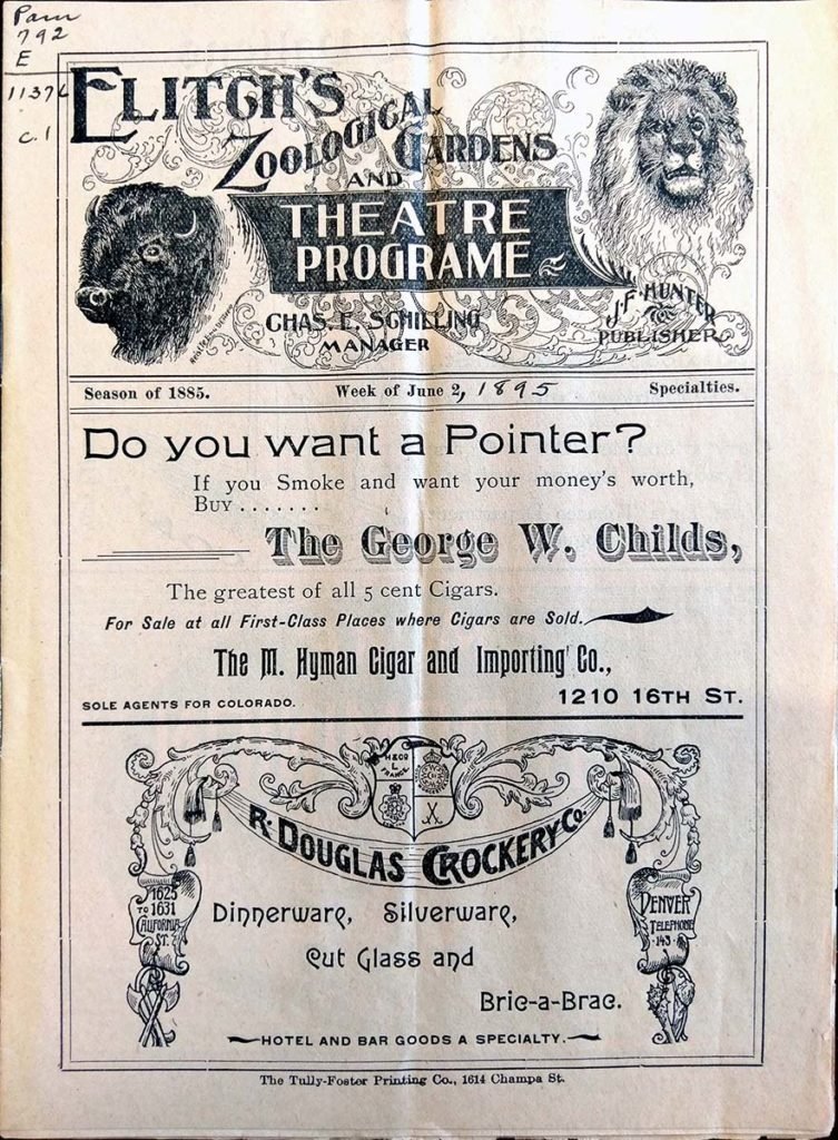 The 1892 season at Elitch Gardens offered a wide variety of vaudeville entertainment in the Theatre and the park. For example, among the vaudeville acts were Eldora, the ideal juggler; […]