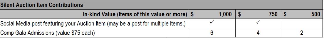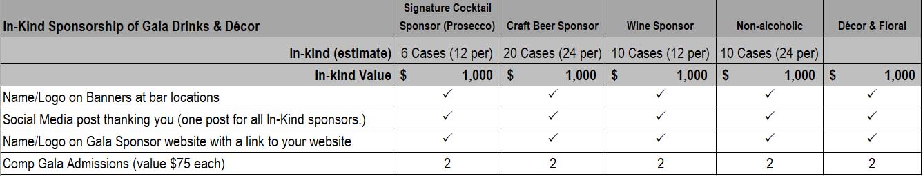 * Exhibit space at the Gala — set up a table to greet attendees (hand out swag!)