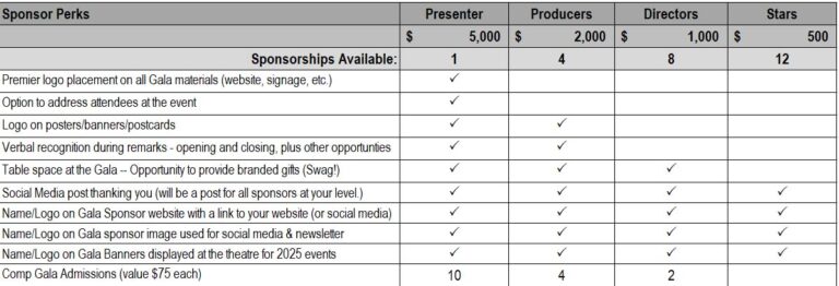 * Name or Logo on Sponsor website with a link to your website or social media.